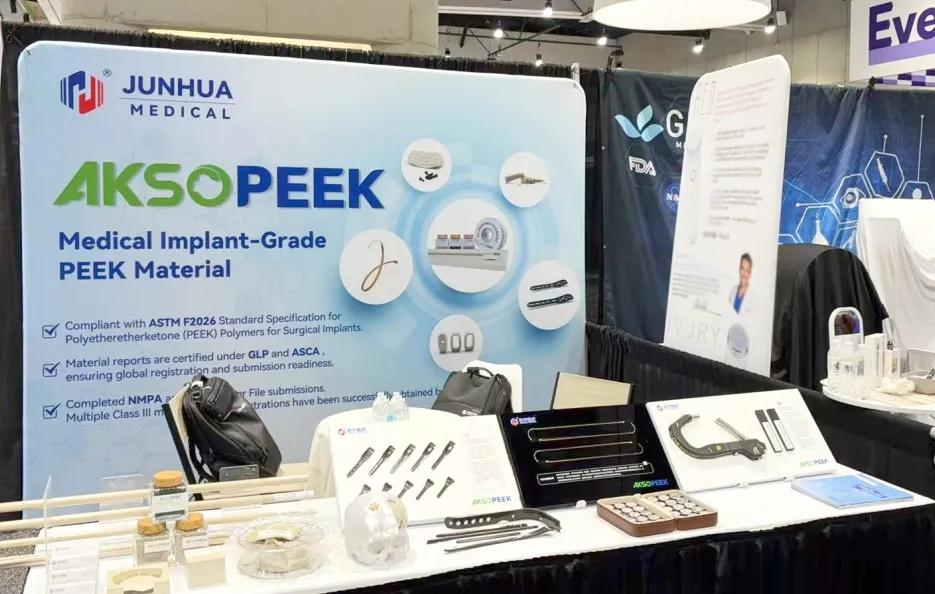 Sergide, AKSOPEEK Medical Implant-Grade PEEK malzemesi, Avrupa, Amerika ve Asya-Pasifik bölgesinden gelen izleyicilerin büyük ilgisini çekti. AKSOPEEK ürün serisi, yerli ve yabancı müşterilerden yüksek beğeni toplayarak, Junhua’nın teknolojik yenilik taahhüdüne güçlü bir ivme kazandırdı.